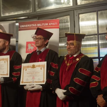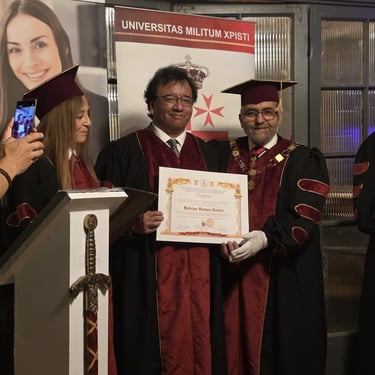 Hoy celebramos su vida y obra, ejemplo de sabiduría, creatividad y servicio, que engrandece los valores de humildad y excelencia. Con gratitud y solemnidad, la Orden Católica de los Humildes Caballeros y Damas de Cristo le otorga la Magna Crux Sapientia, como símbolo de reconocimiento a suentrega y visión