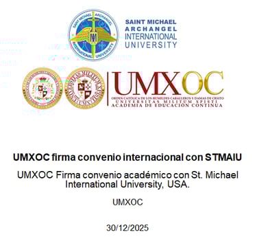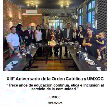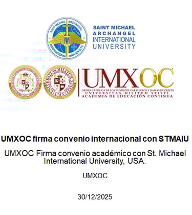La UMXOC es la obra educativa de la Orden Católica de los Humildes Caballeros y Damas de Cristo. Desde 2012, promovemos una sociedad más justa, inclusiva y solidaria a través de programas de educación continua no formal, accesibles y transformadores, que reflejan nuestra vocación de servicio y formación integral.