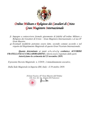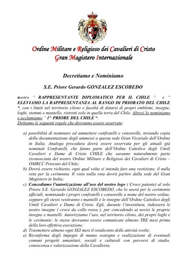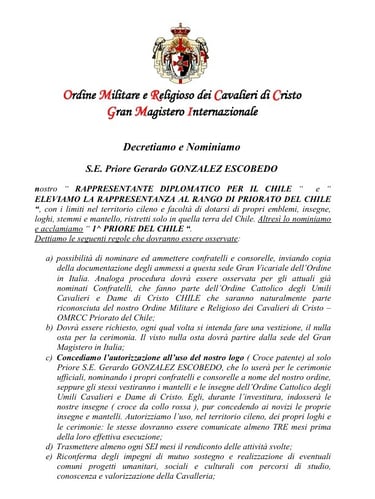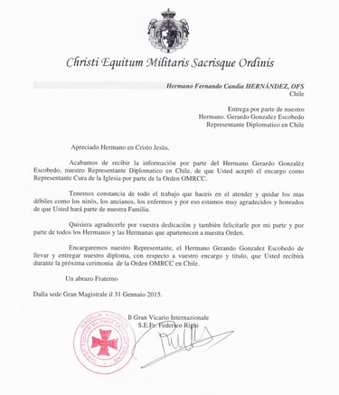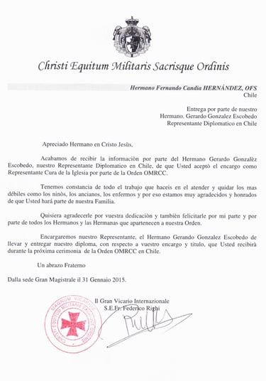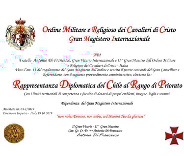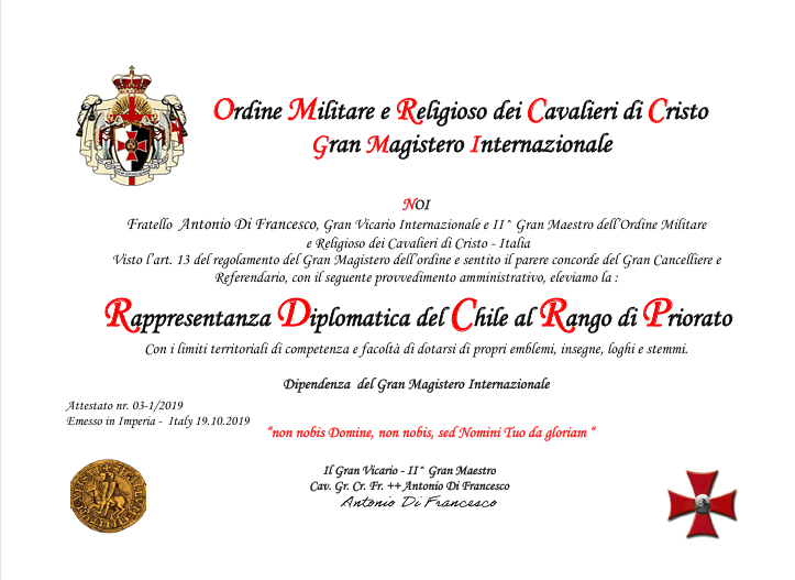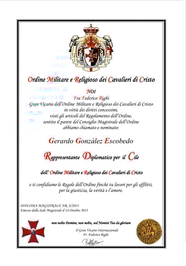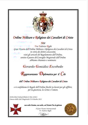 Representante Diplomático para Chile de la Ordine Militare e Religioso dei Cavalieri di Cristo Italia
