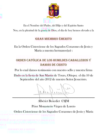A lo largo de su trayectoria, la Orden Católica de los Humildes Caballeros y Damas de Cristo ha sido honrada con múltiples reconocimientos que validan su compromiso con la excelencia, la formación ética y el servicio cristiano en contextos educativos, sociales y humanitarios.